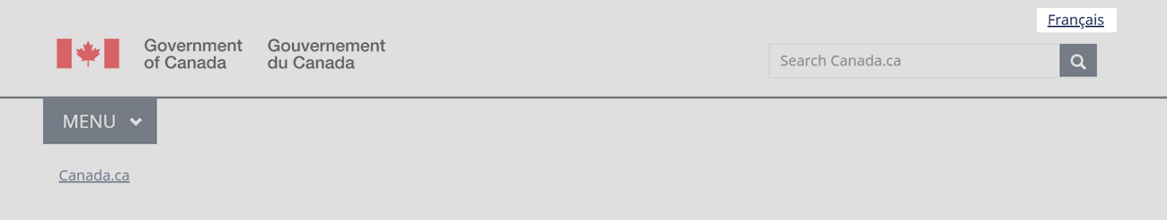 Standard header of an English Canada.ca page with a highlight of the linked word Français in the top-right corner