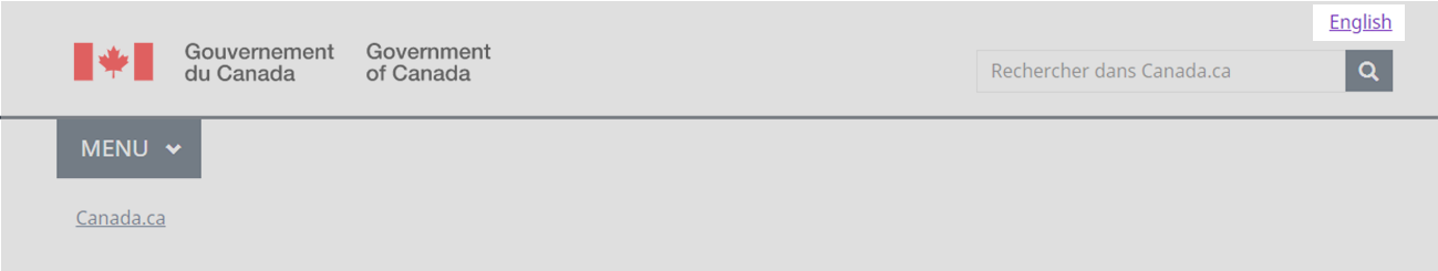 All public-facing Government of Canada content is available in both official languages. A language toggle in the global header provides access to the corresponding page in the other official language.