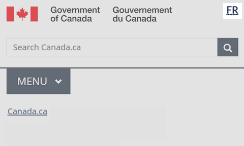 Standard header of an English Canada.ca page with a highlight of the linked abbreviation FR in the top-right corner
