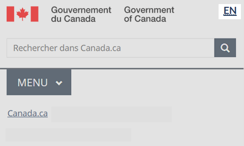 Standard header of a French Canada.ca page with a highlight of the linked abbreviation EN in the top-right corner